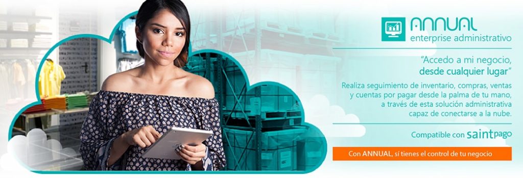 ANNUAL cloud es la última versión en innovación de Software administrativo pensado para pequeñas y medianas empresas con la capacidad de desarrollarse en la nueva economía e incluye la posibilidad de crear tu propia tienda virtual con inventario en línea. Todo desde la tierra o la Nube. Te permite disponer de la información de tu negocio estés dónde estés e incluye un de botón de pago (Saintpago.com) para realizar ventas electrónicas a través de tu tienda virtual de manera rápida, segura y directa. ANNUAL cloud también ofrece numerosas ventajas y novedades para los negocios del futuro electrónico como; Inteligencia de negocio, Geoubicación y Datamart, herramientas novedosas para saber dónde, cuándo y a quién vender. Impulsa tu empresa a otro nivel, con la Nube tu empresa sube.